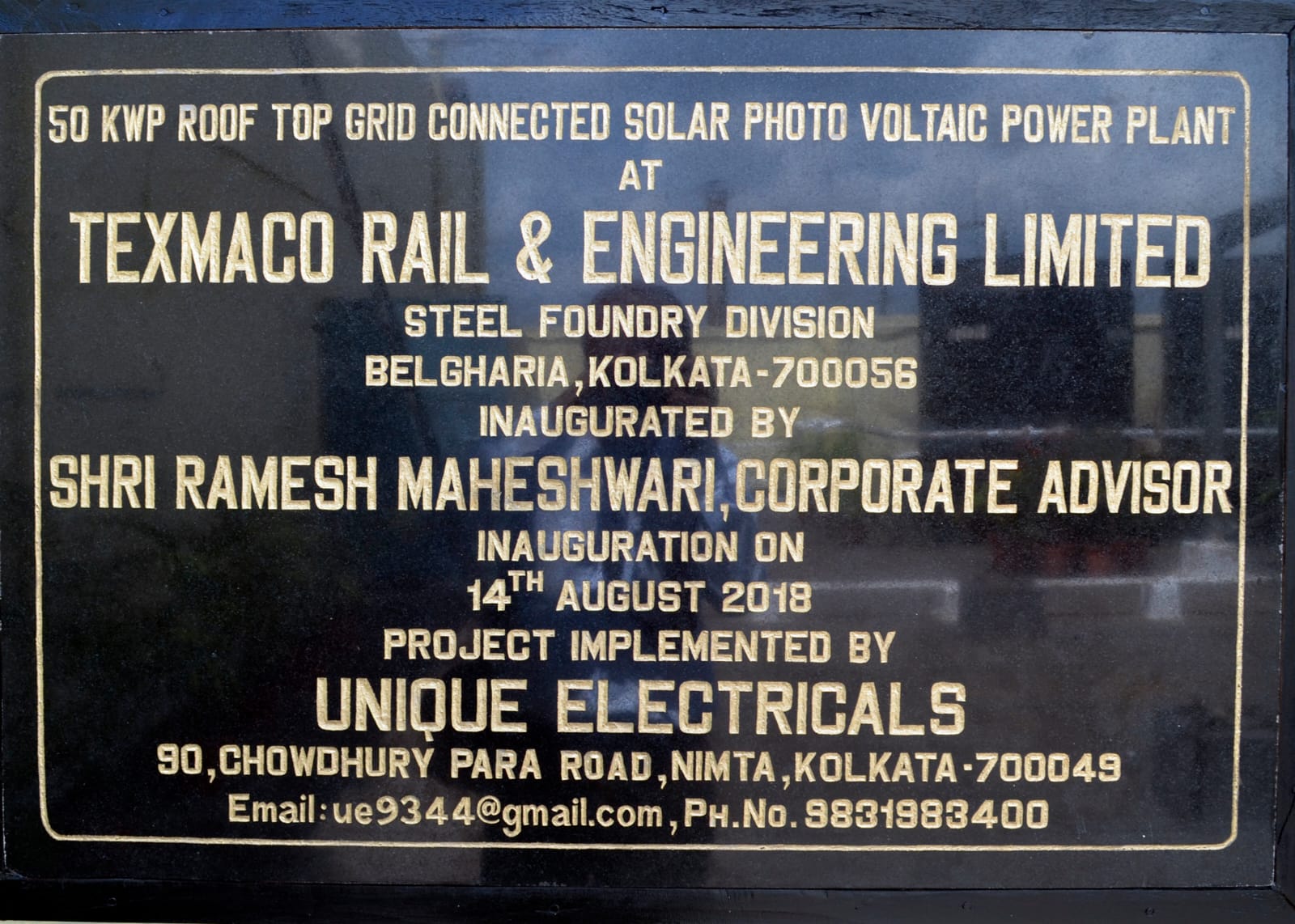 50 KW Rooftop solar power plant at TEXMACO RAIL & ENGINEERING